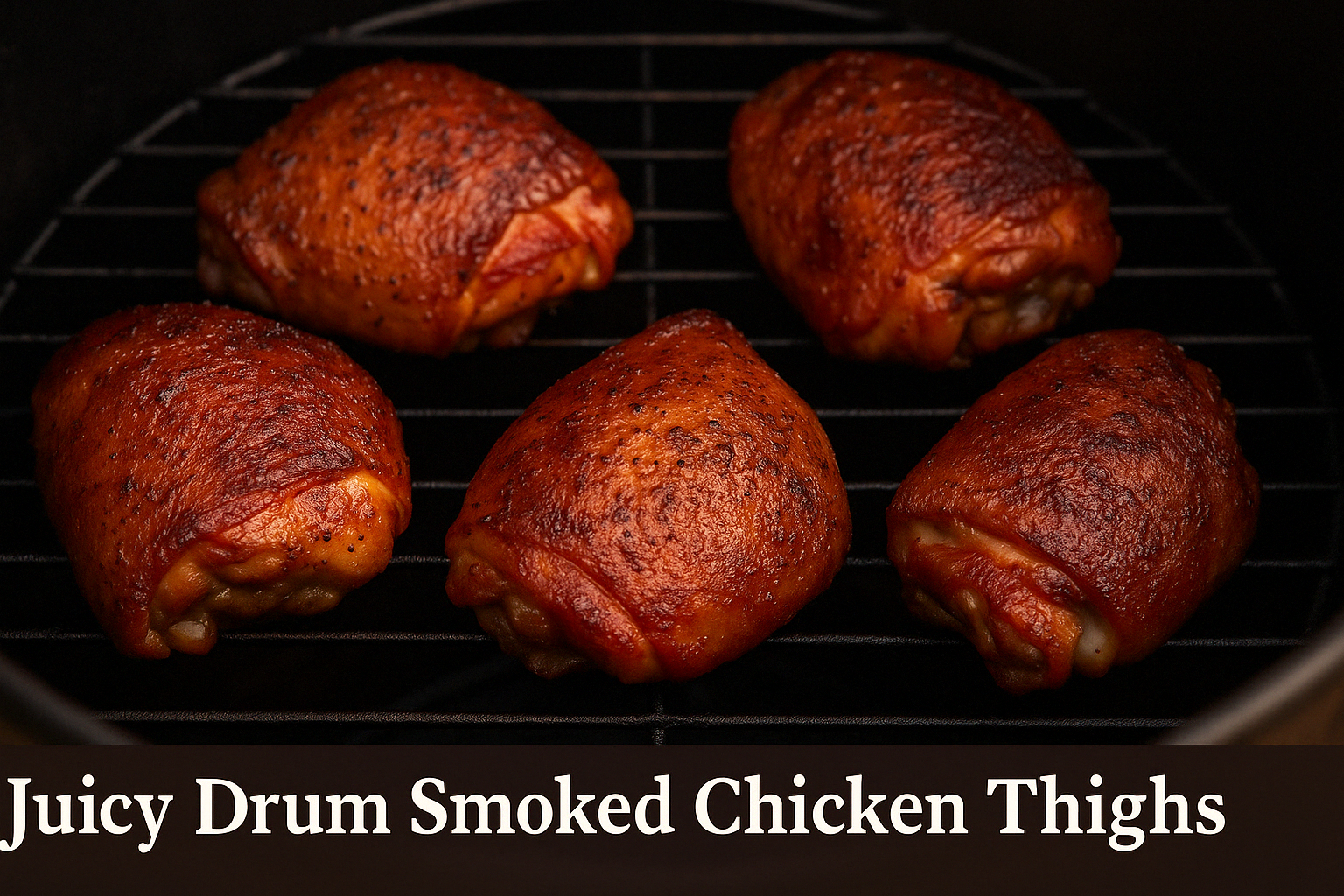 These Juicy Drum Smoked Chicken Thighs are packed with flavor, seasoned simply with BBQ rub, and slow-smoked over applewood or cherry for that perfect bite. Cooked low and slow on a drum smoker, the thighs stay tender and moist with crispy, golden skin. Great for weekend grilling or impressing guests at your next BBQ.