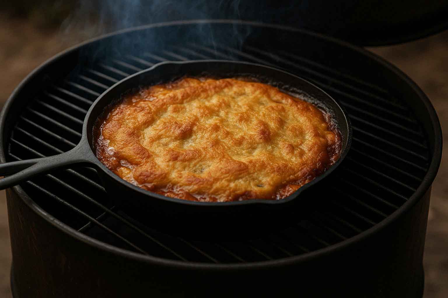 Peach Cobbler on the Drum is a warm, golden dessert made right on your smoker. With a bubbly peach filling and soft biscuit topping, it picks up a hint of smoke that makes it stand out from your average oven-baked version.
